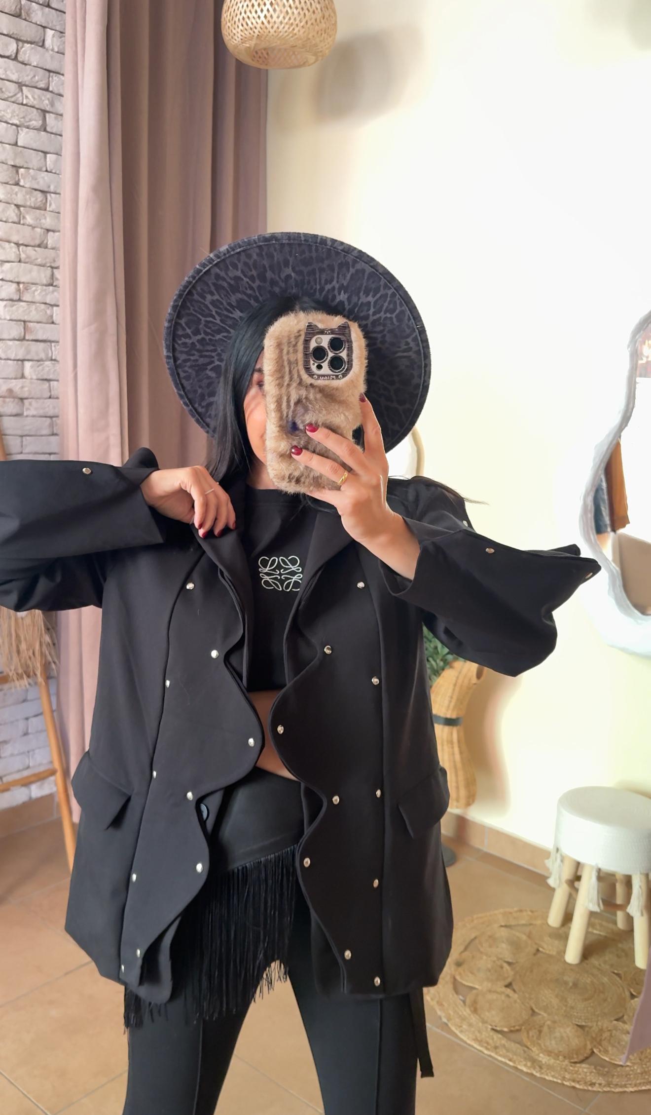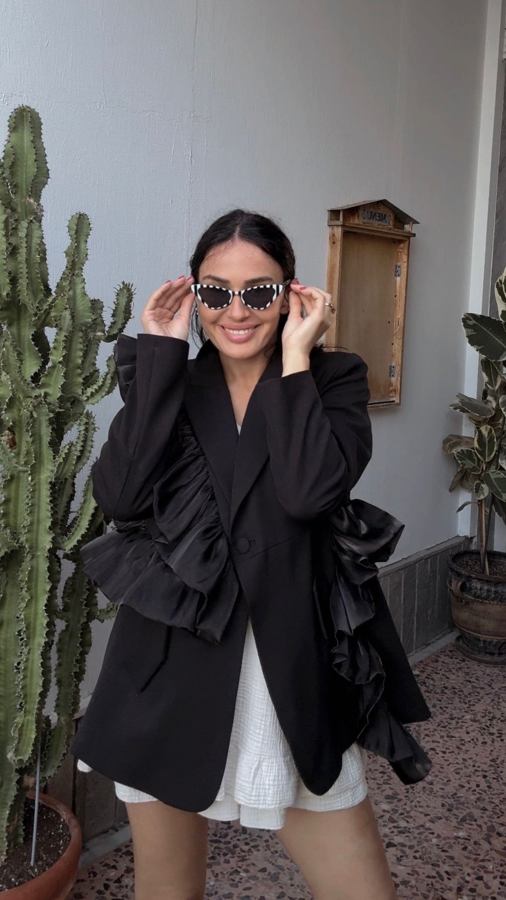 Moćan sako koji podiže svaku kombinaciju na potpuno novi nivo. Krojen da stoji besprijekorno, a dovoljno upečatljiv da ne prođe nezapaženo. Bilo da ga nosite uz farmerke, haljinu ili pantalone – ovaj komad uvijek ostavlja utisak.