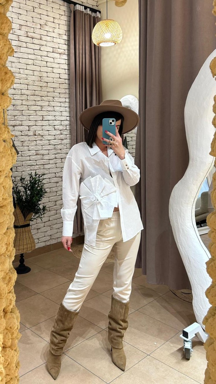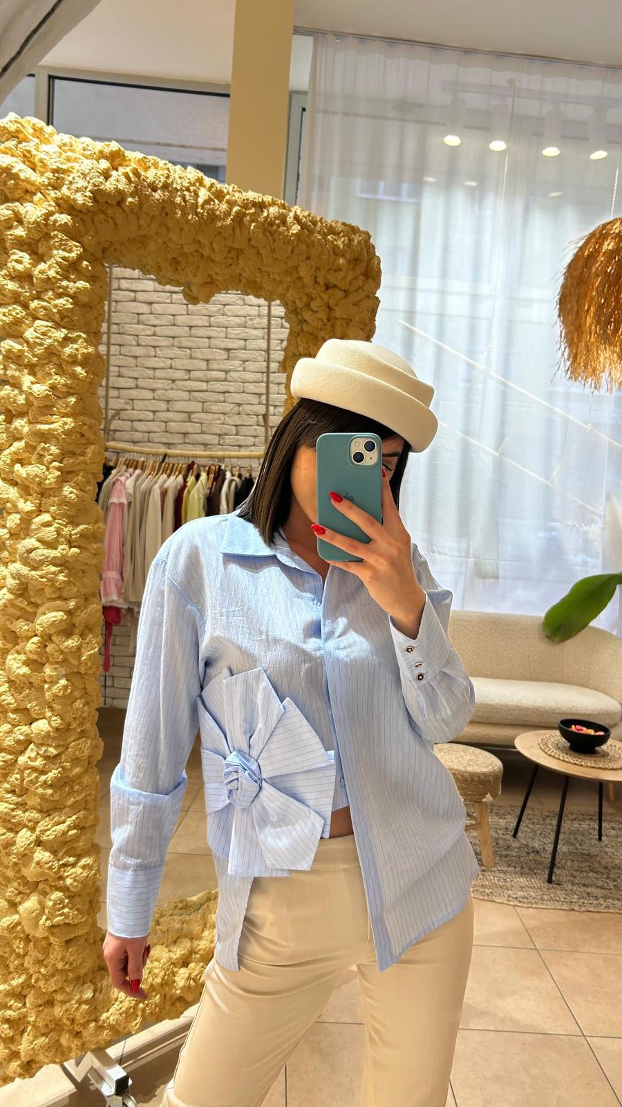 Košulja klasične siluete s upečatljivim detaljem koji naglašava struk i daje joj poseban modni karakter. Izrađena od predivnog, kvalitetnog pamuka koji je ugodan na koži i iznenađujuće praktičan – ne zahtijeva peglanje. Uredna kragna i dugi rukavi čine je bezvremenskim komadom, dok dizajnerski akcenat donosi dozu elegancije i statement efekta. Savršeno se uklapa u poslovne, elegantne i moderne kombinacije.