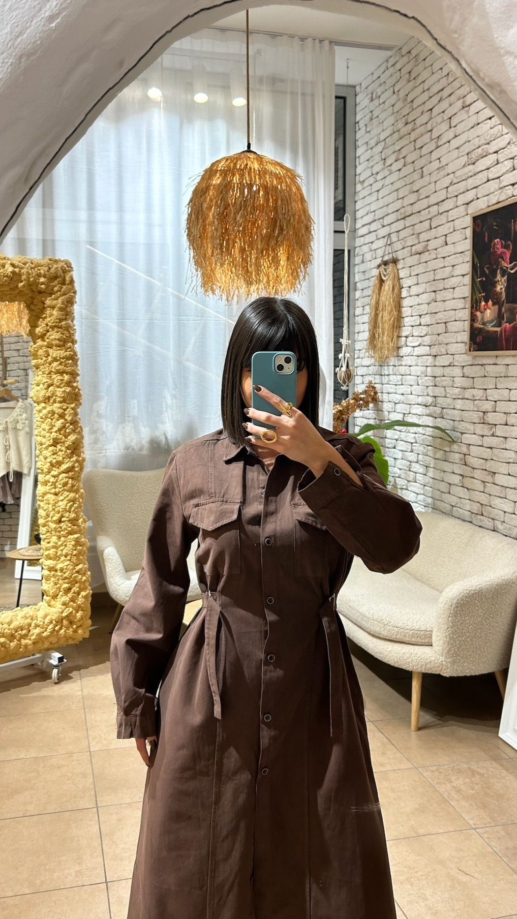 Strukirana silueta i dug dugmićasti kroj daju joj moderan, ali bezvremenski izgled.