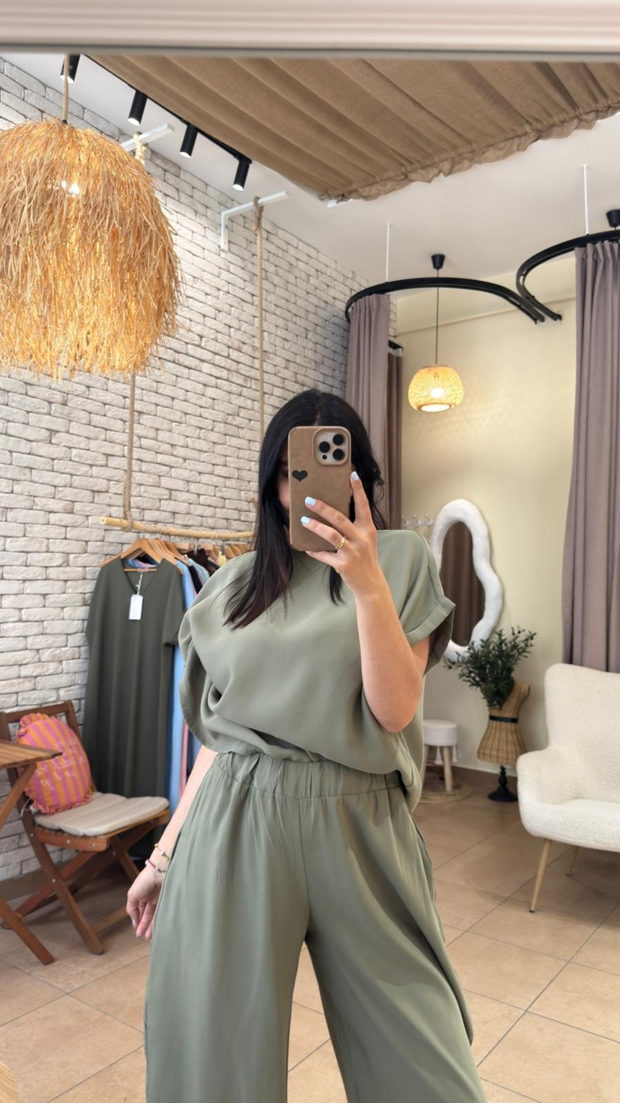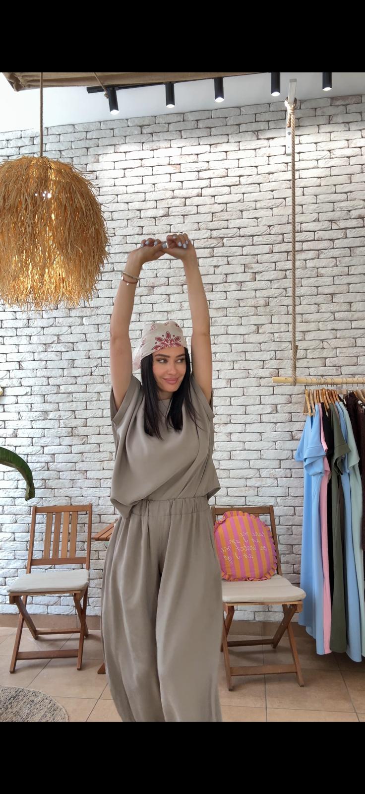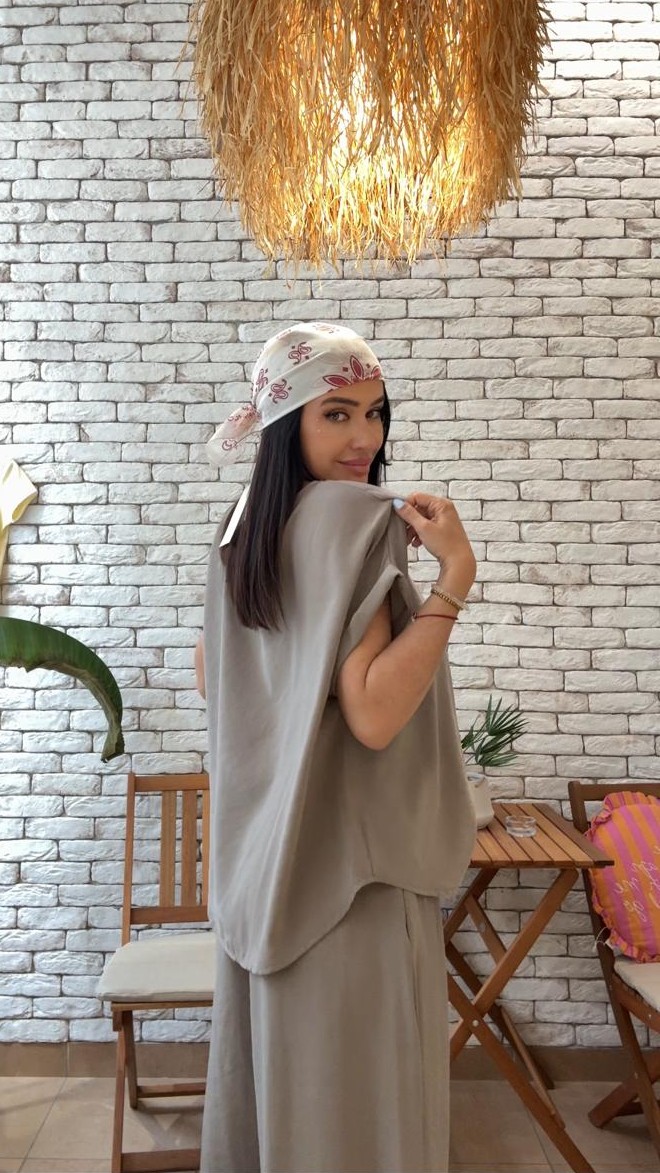 Dvodijelni set koji spaja udobnost i jasan kroj. Sako ravnog, blago oversize kroja sa kontrastnim detaljem na rukavima daje strukturu i karakter, dok pantalone ravnih nogavica lijepo padaju i pružaju osjećaj lakoće tokom nošenja. Set je dizajniran tako da se nosi zajedno, ali potpuno funkcioniše i odvojeno – sako uz farmerke ili haljinu, pantalone uz basic top ili pleteninu. Prijatan materijal omogućava udobno nošenje tokom cijelog dana i lako uklapanje u različite stilove.
