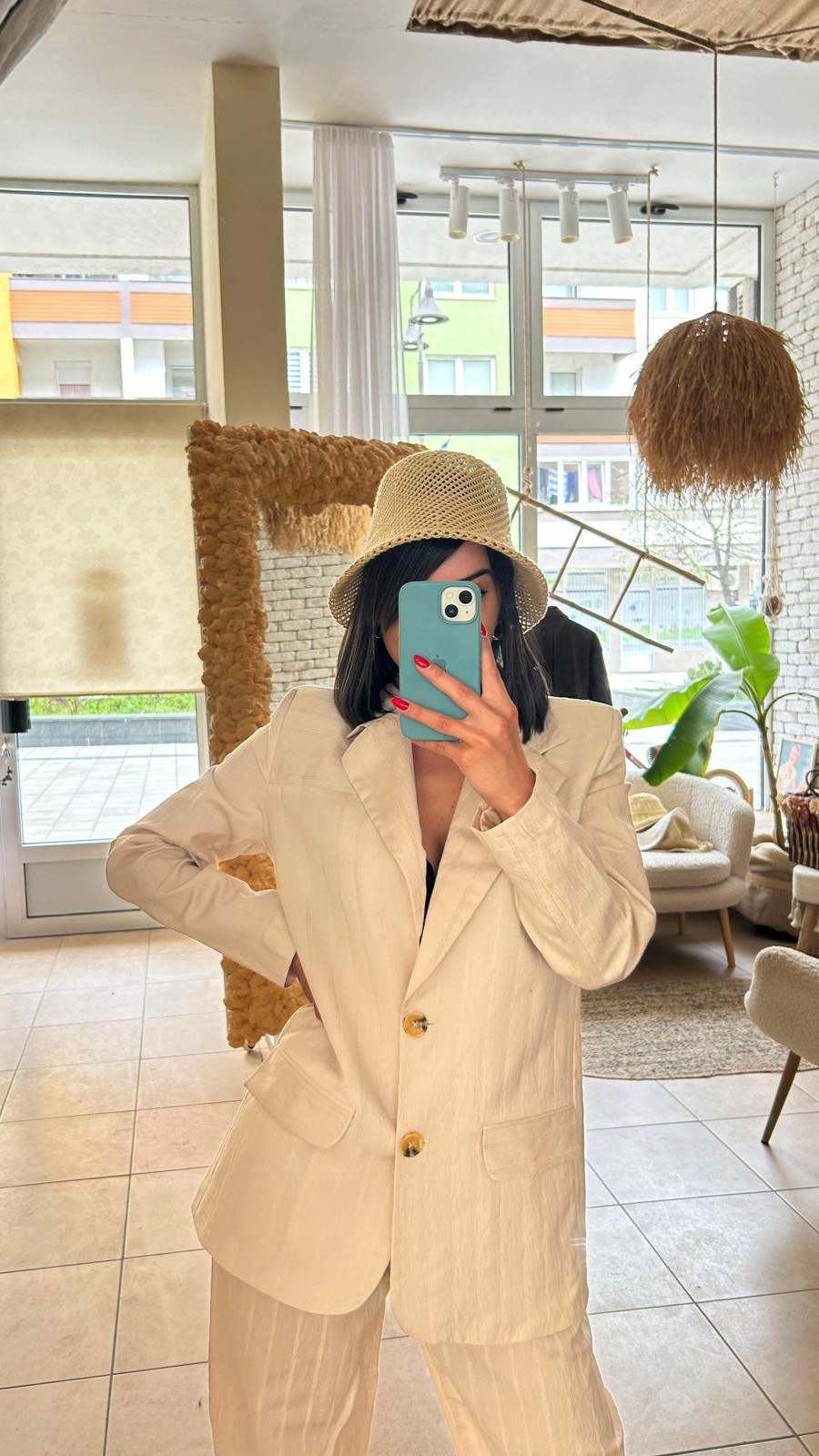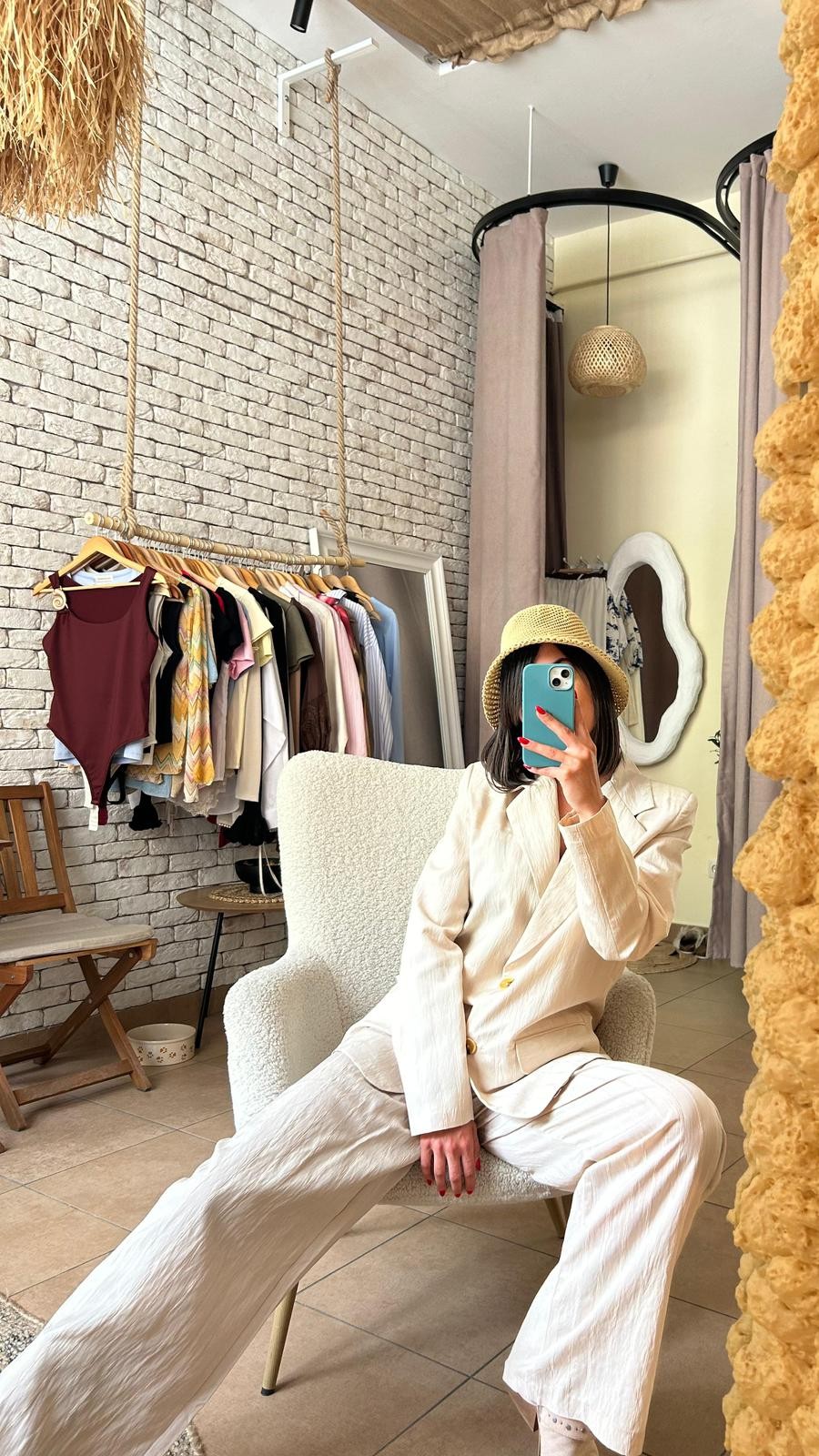 Dvodijelni set koji spaja udobnost i jasan kroj. Sako ravnog, blago oversize kroja sa kontrastnim detaljem na rukavima daje strukturu i karakter, dok pantalone ravnih nogavica lijepo padaju i pružaju osjećaj lakoće tokom nošenja. Set je dizajniran tako da se nosi zajedno, ali potpuno funkcioniše i odvojeno – sako uz farmerke ili haljinu, pantalone uz basic top ili pleteninu. Prijatan materijal omogućava udobno nošenje tokom cijelog dana i lako uklapanje u različite stilove.
