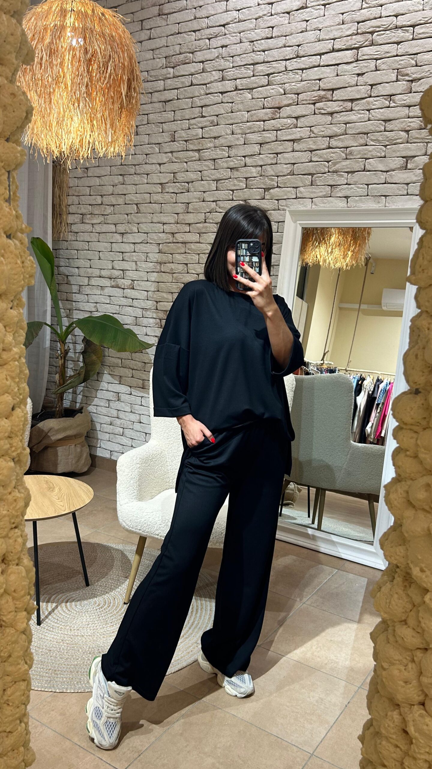 Široke nogavice i ležeran kroj gornjeg dijela daju mu modernu notu, dok crna boja dodaje dozu elegancije. Savršen je saveznik za sva vaša putovanja – praktičan, udoban i uvijek classy. ✨