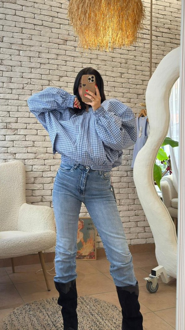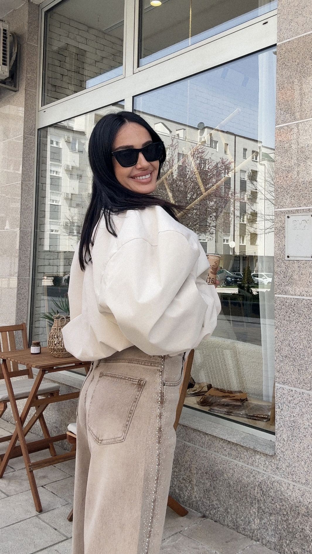 Kroj je oversized sa naglašenim rukavima, što daje karakter i lakoću kombinovanja uz jeans, čizme ili basic komade.